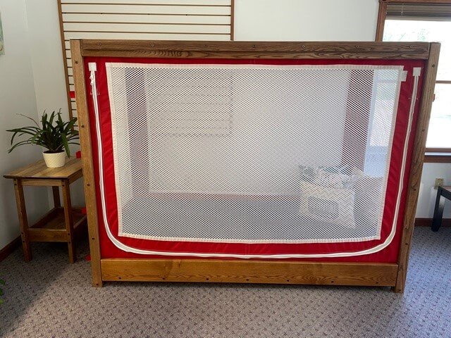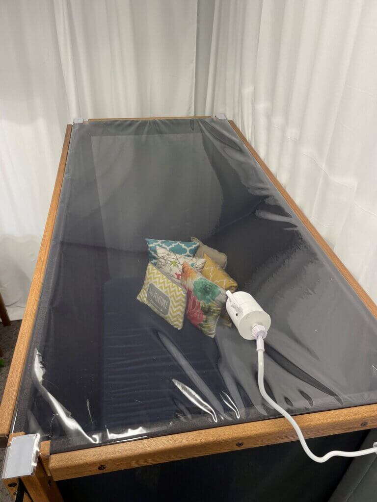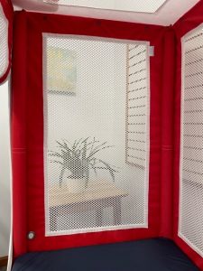 - Provides access for tubing into the sleeping area without compromising the safety and security of the enclosure